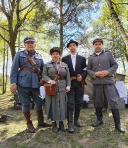 Po dojechaniu na miejsce uczestnicy udawali się do sekretariatu, po wpisaniu się na listę otrzymywali talon na kiełbaski, była też herbata i pyszna kawa z ekspresu. W parku było ognisko oraz mnóstwo atrakcji historycznych. Strzelnica zorganizowana przez GRH Gwardia, rekonstruktorzy w mundurach z okresu międzywojennego umożliwiali strzelanie do tarczy za pomocą replik karabinów w systemie ASG. GRH Szrank w siedmioosobowym składzie zaprezentowali nam dwie dioramy, kawiarenkę oraz obóz harcerski. Rekonstruktorzy przedstawili sylwetki cywilów, harcerza oraz członka Korpusu Ochrony Pogranicza. Diorama GRH Powstaniec Śląski przedstawiała szpital polowy. Członkowie ubrani byli w mundury z okresu odzyskiwania niepodległości oraz walk w jej obronie między innymi wojna polsko-bolszewicka oraz okres III Powstania Śląskiego. Wystawa SRH Jastrzębski Wrzesień 1939 była pełna artefaktów Wojska Polskiego przede wszystkim kawalerii. Członkowie ubrani w mundury znakomicie zaprezentowali swą kolekcję oraz udzielili nam bardzo ciekawego wykładu na ten temat. Na mecie było sporo rowerów z epoki oprócz wspomnianego wyżej roweru „Korona” Mateusza Słupika, swoją kolekcję zaprezentował także Adrian Biegun przedstawiciel stowarzyszenia TruppenFahrrad. Swą wystawę miało również Stowarzyszenie Historyczno-Eksploracyjne – Silius. O godzinie 12:30 w finale pikniku na teren wjechała siedmioosobowa sekcja konnych z Ochotniczego Szwadronu 3. Pułku Ułanów Śląskich. Dowódca grupy otrzymał kwiaty na pamiątkę wydarzenia z 4 lipca 1922, gdy żołnierze Wojska Polskiego wjechali do Żor. Ostatecznie la liście uczestników zapisało się aż 280 osób co stanowi rekord Historycznego Rajdu Rowerowego.