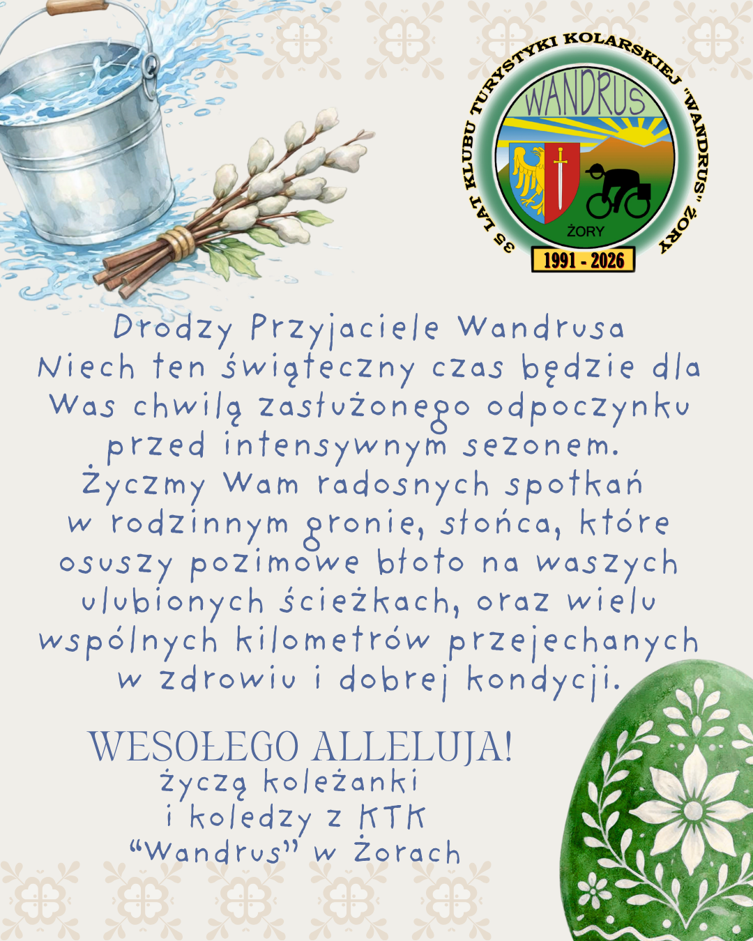 Niech wiosenne słońce dodaje energii na każdej trasie, wiatr zawsze sprzyja, a drogi prowadzą tylko do pięknych widoków i niezapomnianych przygód.